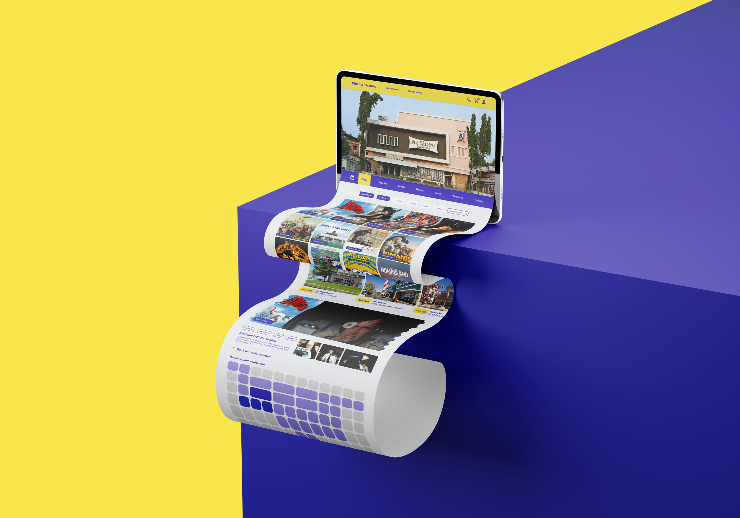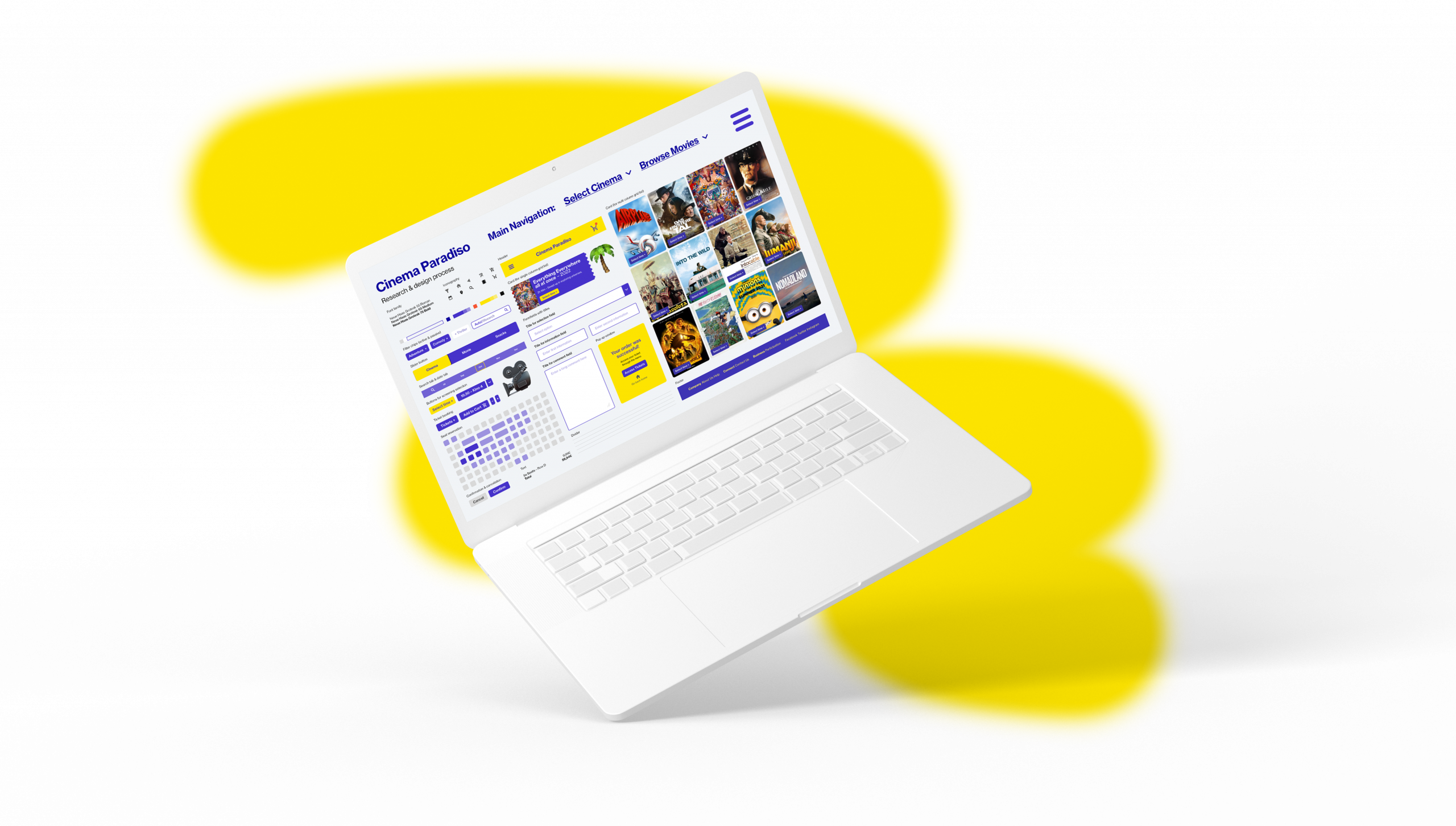 Role: Design the brand identity and research data in UX design. Implement the design system and iterate the design with the help of insights gathered from the data to create an experience for the real user target group persona (Different types of cinema enthusiasts). The outcome project deliverables were a prototype for a ticket reservation app. And a prototype for a mobile and desktop version of a responsive webdesign complementary to the app design of the brand Cinema Paradiso.